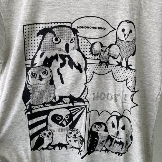 奥谷ファブリック アメコミ風フクロウTシャツ オートミール S