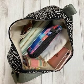 見た目はコンパクトなバッグですが、スマホ・ハンカチ・ポケットティッシュ・財布などを入れてもまだ余裕があります。