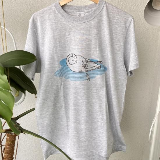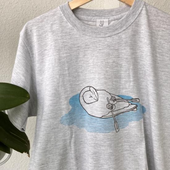 ニギコロポーズで舟になっているメンフクロウTシャツです。