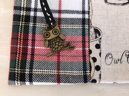 しおりにしたリボンの先には、フクロウのチャームを付けました。