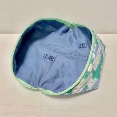 ファスナーを開けると広げた状態で中身を取り出せるポーチです。