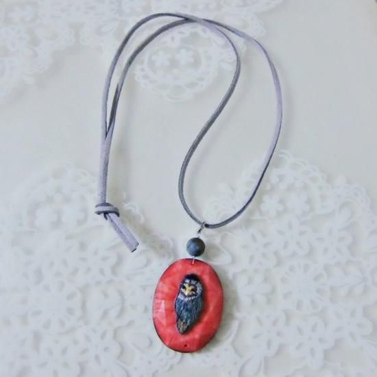 小さい刺繍ブラックメンフクロウのペンダントです。