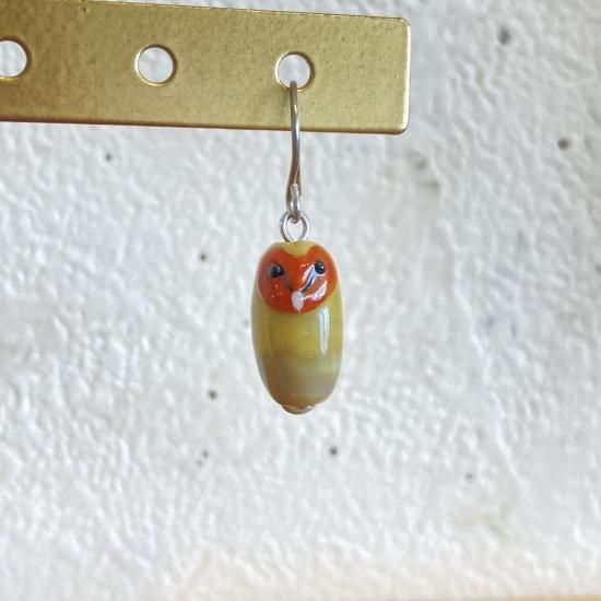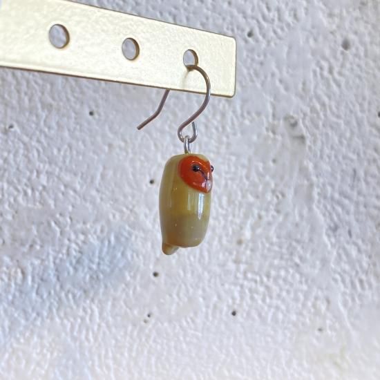 縦に長い形のメンフクロウ玉をピアスにしました。