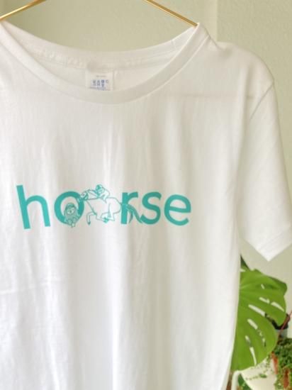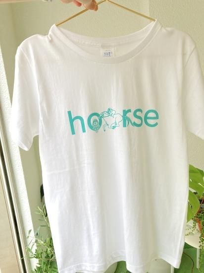 奥谷ファブリック『ホースホーブー』Tシャツ 白 ロゴカラー(ミント)サイズ(ガールズM、ビッグシルエットS)