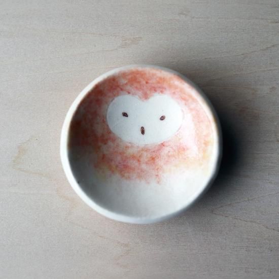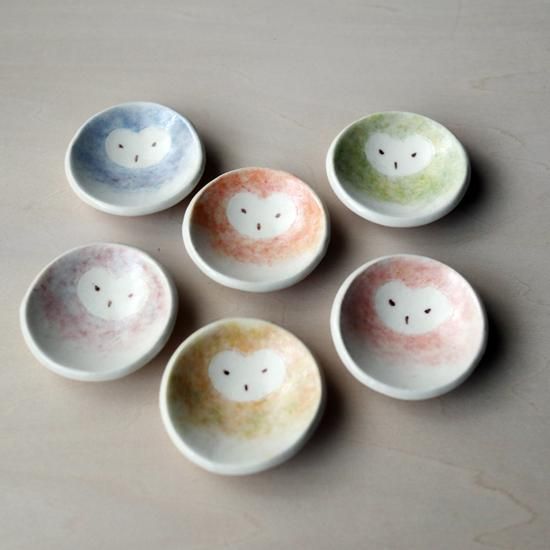 メンフクロウの顔を描いた丸型の豆皿です。