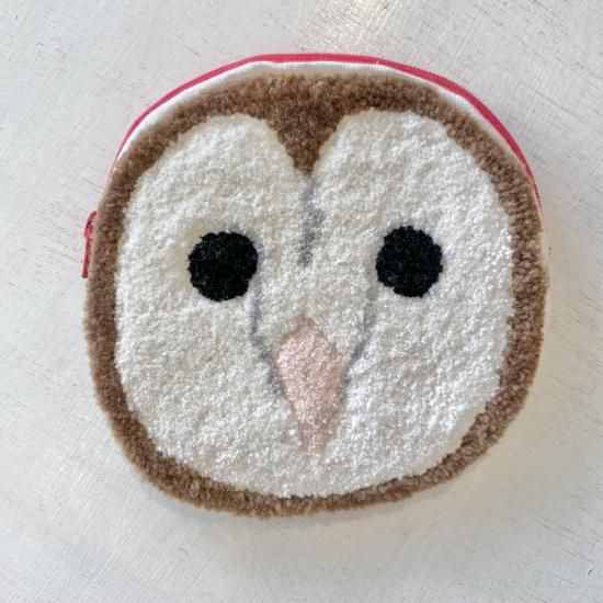 パンチニードルでホーちゃんの顔を刺繍したポーチです。