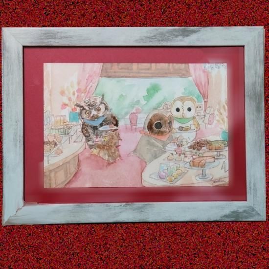 Ko-chan's イラスト原画(水彩)ポストカードサイズ ケーキバイキング