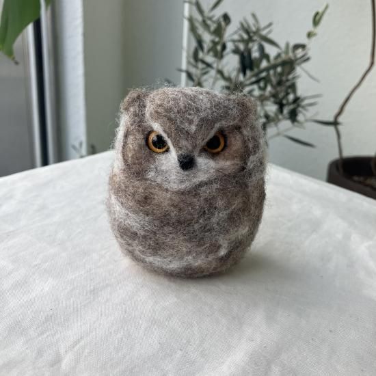 雛なのでいつもの手のりフクロウよりもふわふわわたわたでひと回り大きいです。