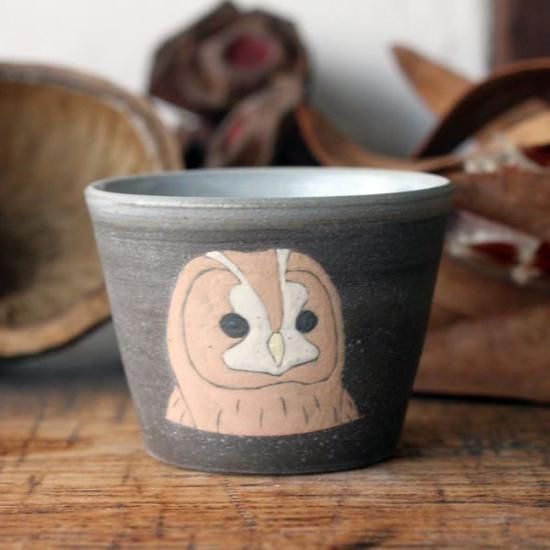 つぐみ製陶所 ぐい呑み モリフクロウ