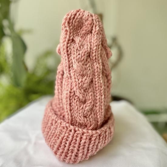室内で被っていても大丈夫なように、少し薄手のニット帽に仕上げました。