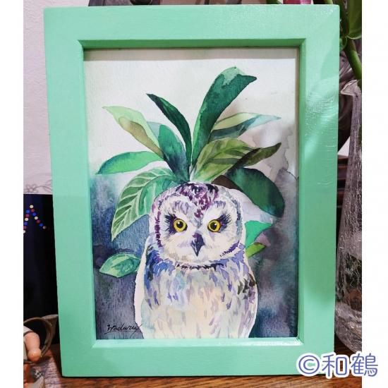 滲む水彩絵の具をよく見ると粒子の浮き沈みを感じる。葉の色にも深みが見えてくる。コミミズクが浮かんでくる。