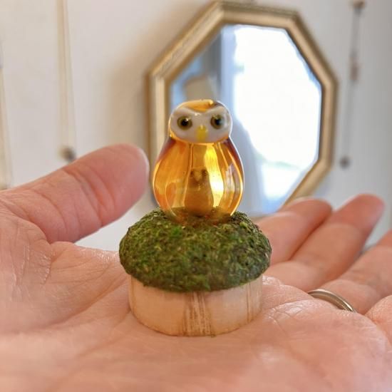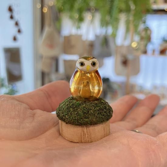 FrozenOcean ガラスミニミニ置物 温室育ち コケの上 フクロウinフクロウ