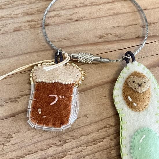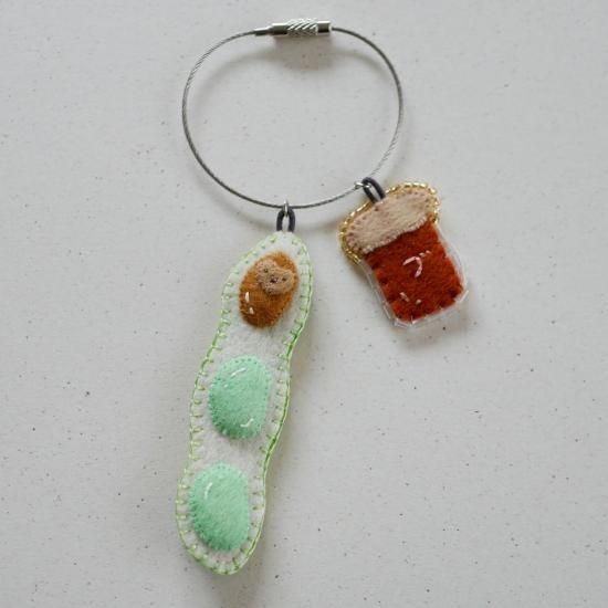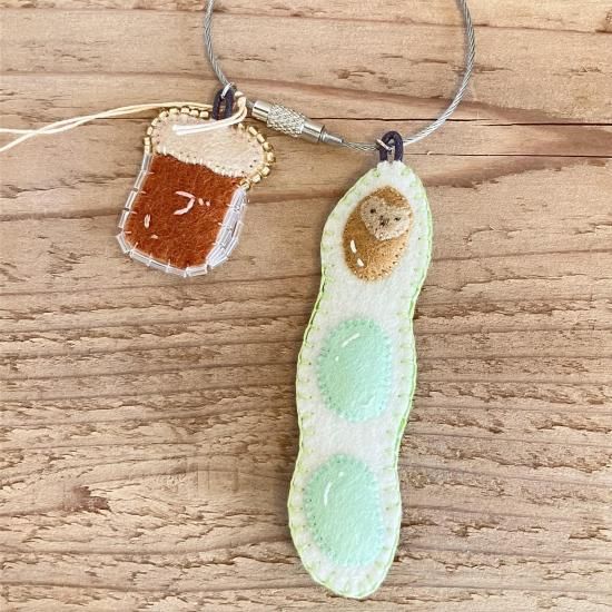 梅雨のジメジメを吹き飛ばす空豆ホーちゃん(ブーちゃん)×ミニビールチャームのキーホルダー。