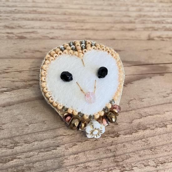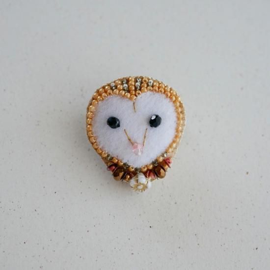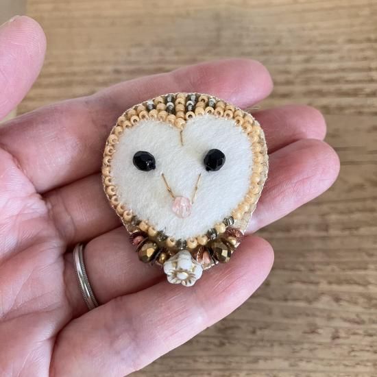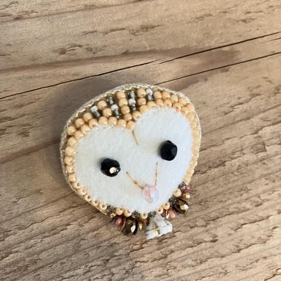 ハルサクイロ メンフクロウのビーズ刺しゅうブローチ A)ノーマルメンフクロウ