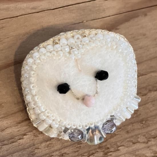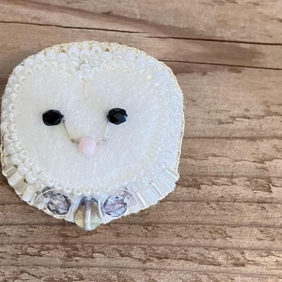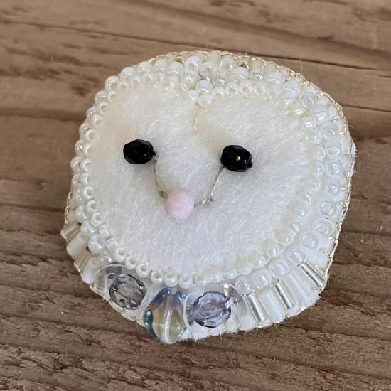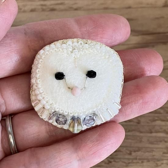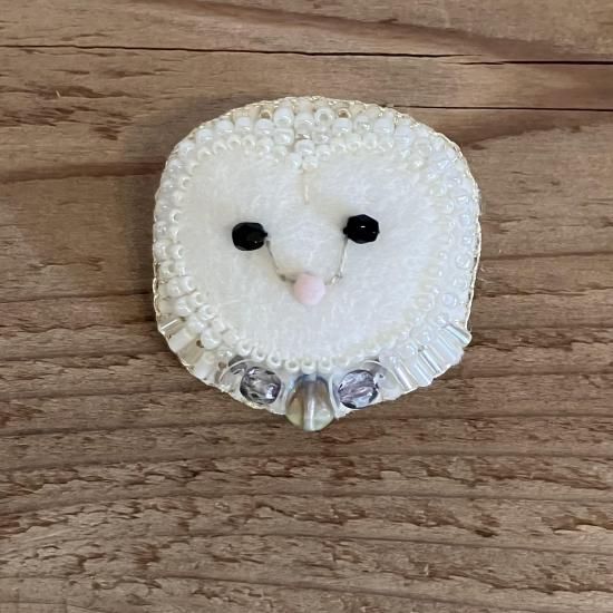 ハルサクイロ メンフクロウのビーズ刺しゅうブローチ C)スーパーホワイトメンフクロウ