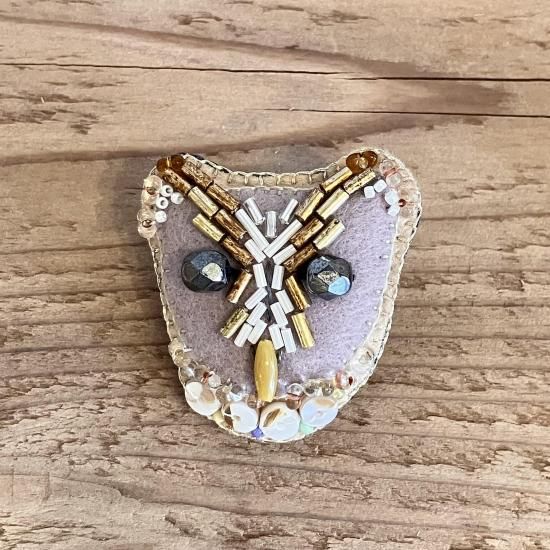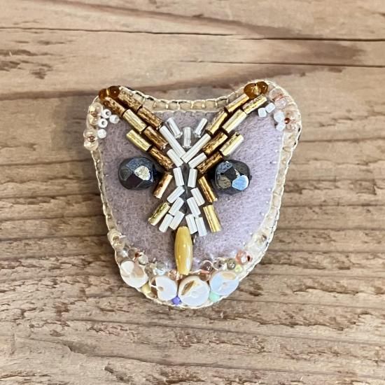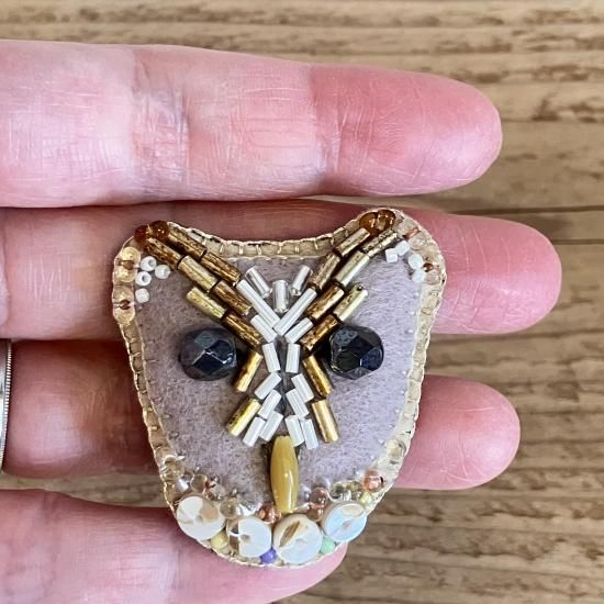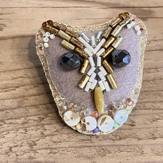 ハルサクイロ メンフクロウのビーズ刺しゅうブローチ E)ニセメンフクロウ