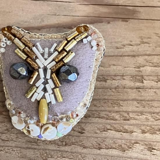 チェコビーズやフランス製スパンコールなどを使い、ワンランク上のフェルトブローチを目指しました。