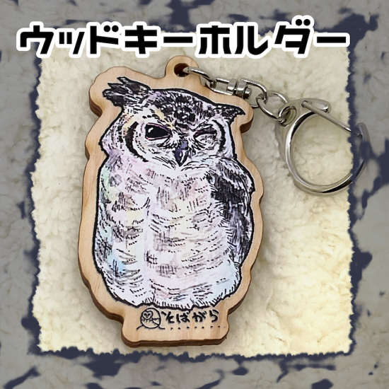 ウッドキーホルダー「アビシニアンワシミミズク」