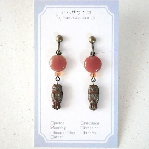ハルサクイロ ふくろうチェコ深緑イヤリング(金具ブロンズ色)