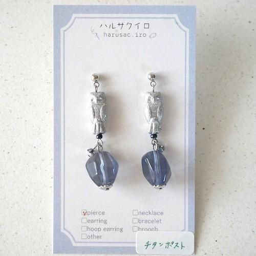 ハルサクイロ ふくろうチェコ銀ピアス(金具シルバー色)