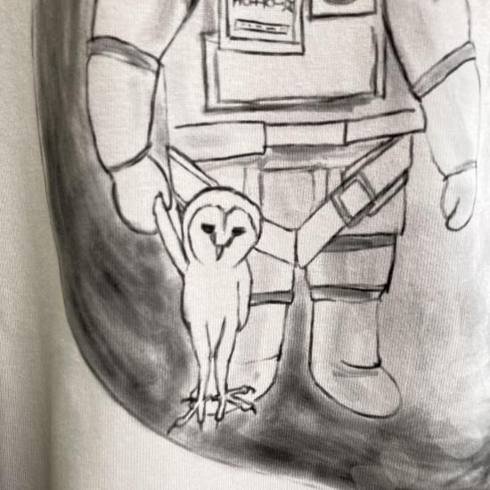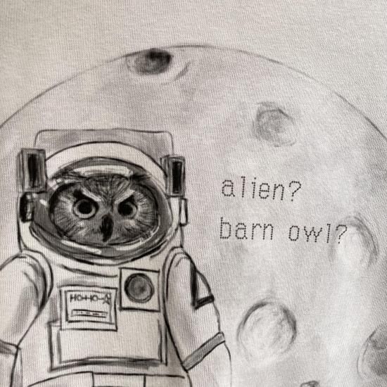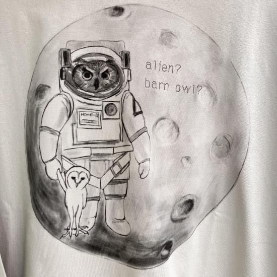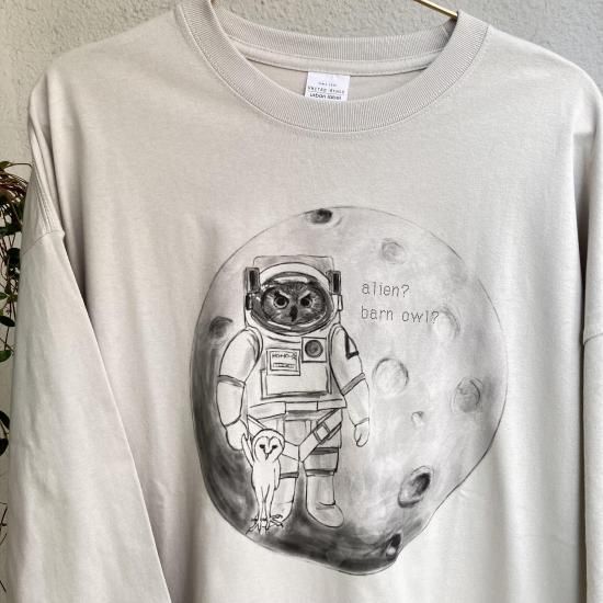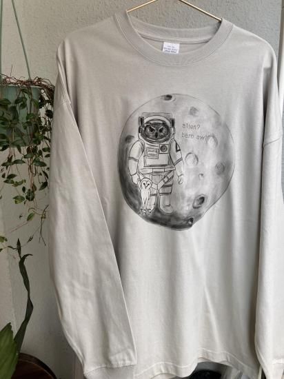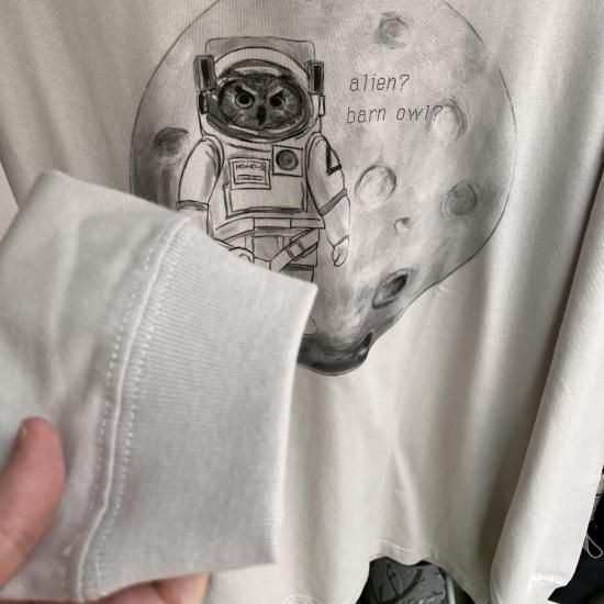 奥谷ファブリック BIGシルエットロングTシャツ エイリアン?メンフクロウ ? ライトグレー