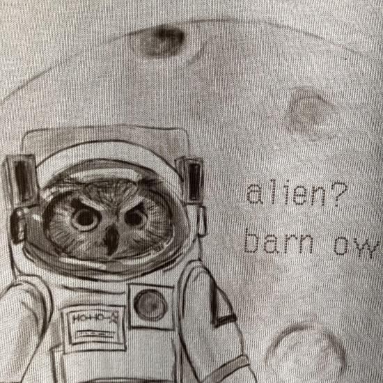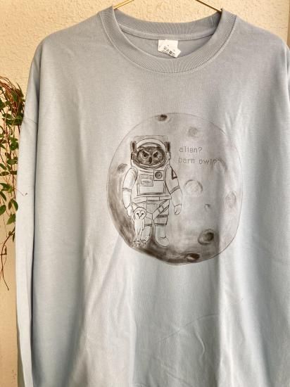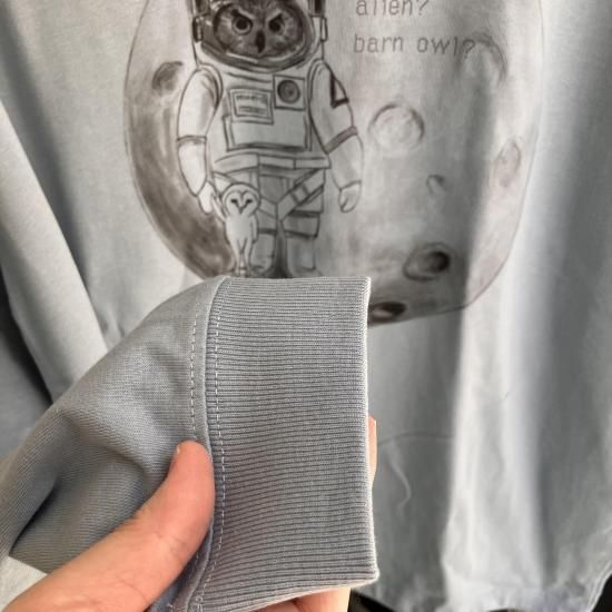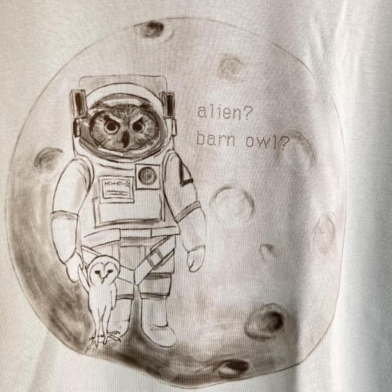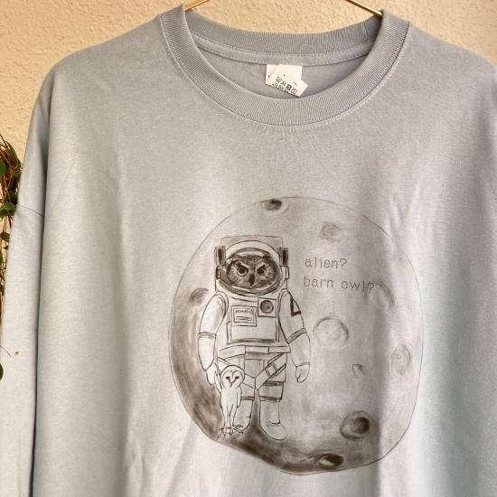 奥谷ファブリック BIGシルエットロングTシャツ エイリアン?メンフクロウ ? スモークブルー