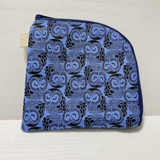 himitsu ぺたんこポーチ owl 小ふくろう・青