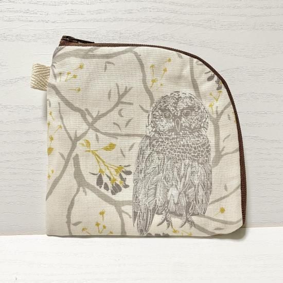 himitsu ぺたんこポーチ owl 枝とふくろう・茶