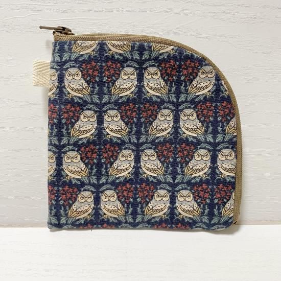 himitsu ぺたんこポーチ owl 小花・赤