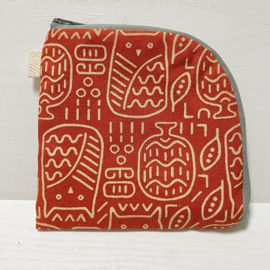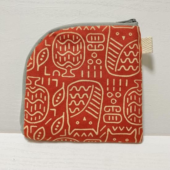 himitsu ぺたんこポーチ owl エキゾチック赤グレー