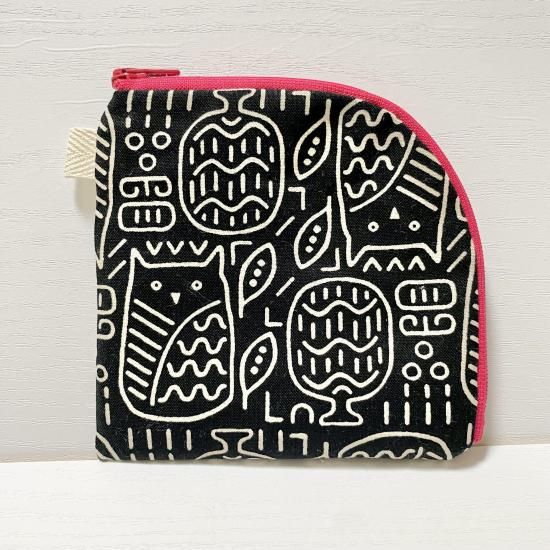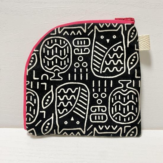himitsu ぺたんこポーチ owl エキゾチック黒ファスナー赤