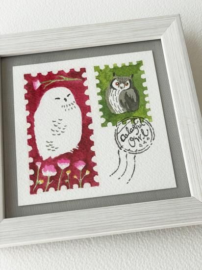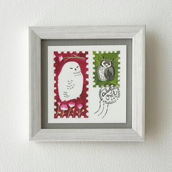 泉はるか 額装原画 カラフルフクロウ切手