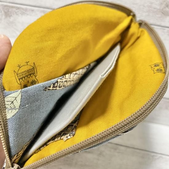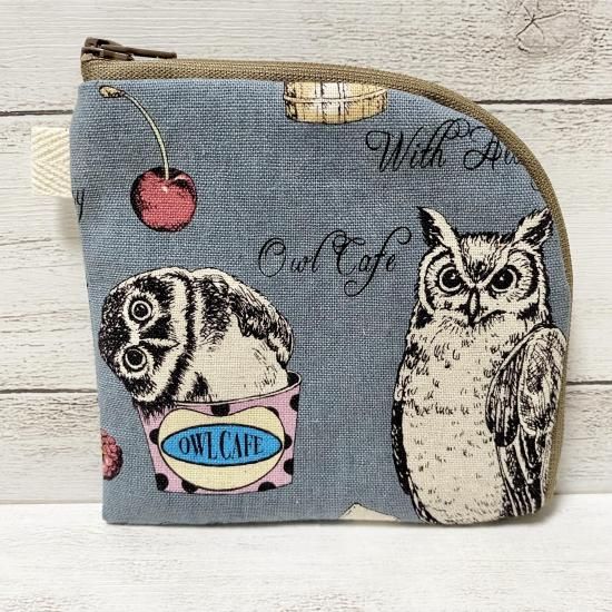 himitsu ぺたんこポーチ カフェowl グレーファスナー