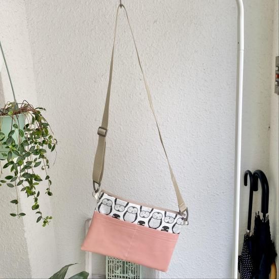 ふくろう柄で、シンプルなサコッシュを作りました。